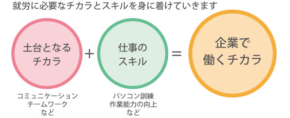 実際に企業へ就職したことを想定し実践形式の訓練を行います。上司役のスタッフから与えられた指示を理解し、計画し、効率を考えながら実践していけるようにします。また実践形式ですので、「働く」とはどういうものなのかイメージすることができます。実際に就職した時に大いに役立つカリキュラムです。